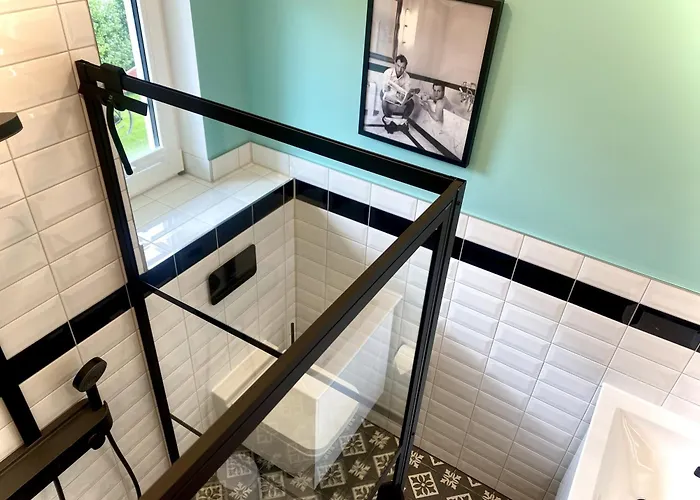 Die Villa Fischer'S Hus bietet 4 Schlafzimmer. Ein Badezimmer hat eine Badewanne und eine Dusche.